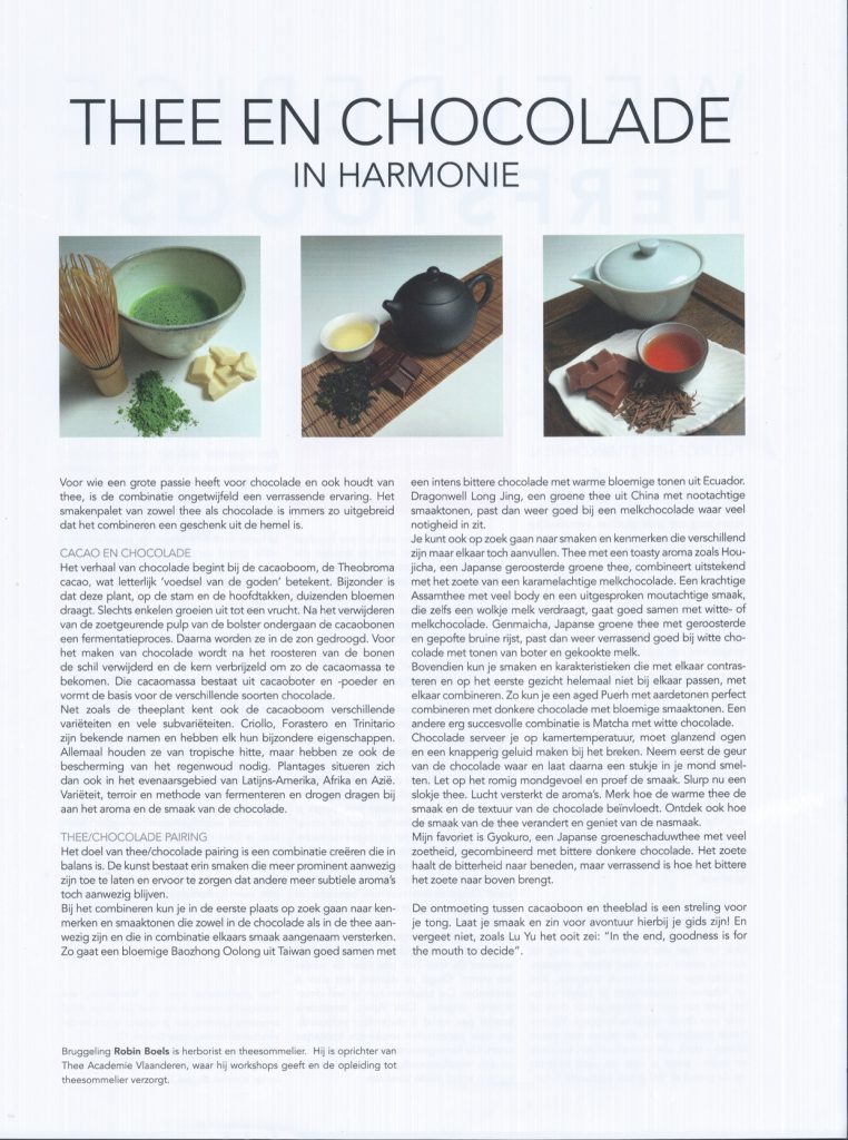 Voor wie een grote passie heeft voor chocolade en ook houdt van thee, is de combinatie ongetwijfeld een verrassende ervaring! Het smakenpalet, van zowel thee als chocolade, is immers zo uitgebreid dat het combineren een geschenk is uit de hemel.